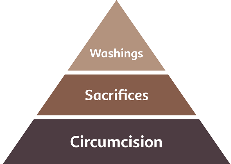 They attained ritual purity through three practices (a purity pyramid) that ensured a person was always clean. By far the most important was circumcision. Rabbis considered it the greatest sacrifice, one made in the flesh.2 Thus, it rendered a person clean, while the uncircumcised were unclean.